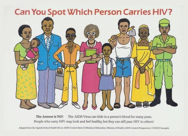 人群中很难发现谁是艾滋病毒携带者,乌干达海报,约1995年