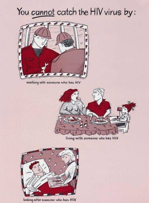 关于艾滋病和艾滋病毒的宣传单,纠正了一些关于艾滋病毒如何被感染的误解,约1990年