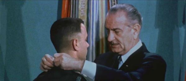 后来肯尼迪死了,基辛格又跟着继任的约翰逊混,约翰逊对他也没啥好感。这两个总统在位期间,基辛格基本上啥都没干成,真正上位,要到中国人熟知的尼克松。下图就是《阿甘正传》里的约翰逊,现在的那个《纸牌屋》里木下总统原型就是他: