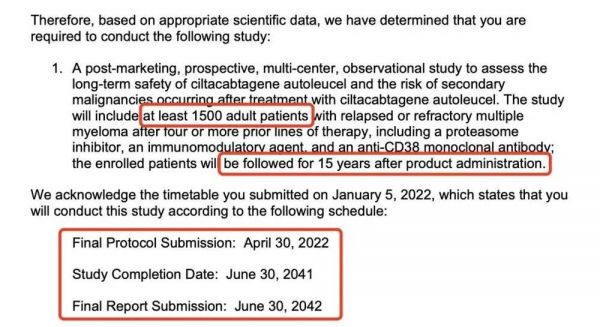 一个是上市后研究(PMR/ PMC),FDA要求即便产品上市,制药企业仍须按规定的时间表,开展15年的长期随访观察安全性研究,以评估包括继发性恶性肿瘤在内的长期安全性和风险。