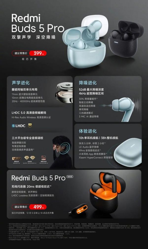 Redmi Buds 5 Pro :399元起。