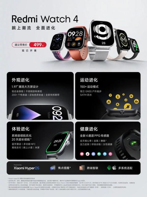Redmi Watch 4:499元。