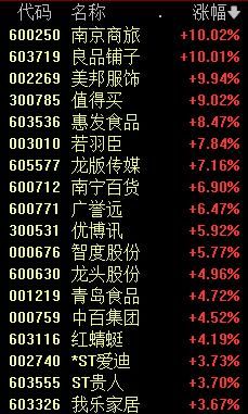 今天上午,部分消费股表现活跃,服装家纺、新零售等板块涨幅居前。