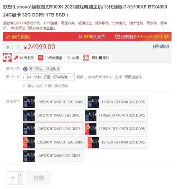 图源:京东从目前的情况来看,在RTX 4090 D开始供应之前,4090整机的供应都会受到影响。硬核玩家想要买到性能最好的PC整机,恐怕要多等一些时日,或是多花几千块买溢价的RTX 4090了。