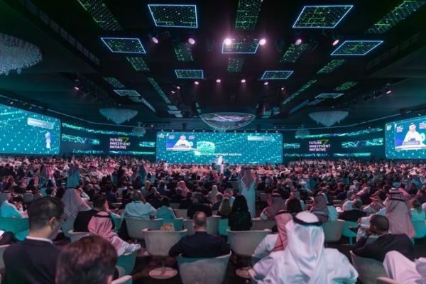 10月24日,在沙特阿拉伯首都利雅得,与会人员在第七届沙特“未来投资倡议”大会会场观看开幕式。新华社发(“未来投资倡议”大会供图)
