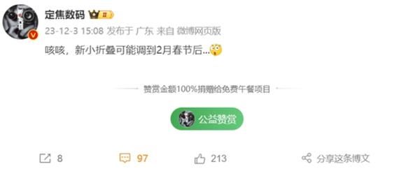 据知名数码博主@定焦数码 此前发布的信息,华为近期会有一场重磅发布会,即将官宣预热,一上来就是王牌新品。结合此前相关爆料,该博主口中的“王牌新品”就是华为全新中端旗舰机型nova 12系列。而就在今天早些时候,该博主爆料,华为pocket S2的发布日期可能要调整到春节之后了。而此前的爆料是pocket S2会与nova 12系列一同发布。种种迹象表明华为nova 12系列的发布时间可能真要延期,至于延期多久还有待确认。