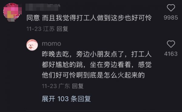 在橡果商业评论的采访中,一名海底捞员工就曾表示,并非所有服务员都愿意跳“科目三”,“并不是所有人都是社牛,我有听到服务员说,觉得好尴尬,想戴口罩、戴墨镜,不想露脸”。