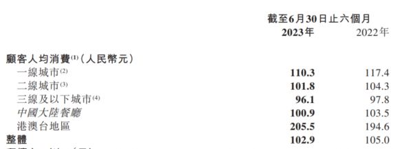 除港澳台地区外,整体都在下降的人均消费。(图/海底捞2023年半年报截图)