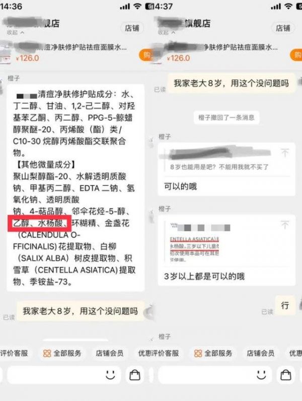 “当时一个以医美面膜火出圈的品牌出了一款祛痘面膜,我有需要就想买几盒,仔细一看商品详情页后发现,这款产品的适用人群竟然涵盖3岁以上的儿童,而且这款面膜的成分中含有乙醇和水杨酸。当时就觉得很震惊,还特意问客服8岁的孩子能不能用,结果竟然得到了肯定的答复。”巧爱忿忿道。