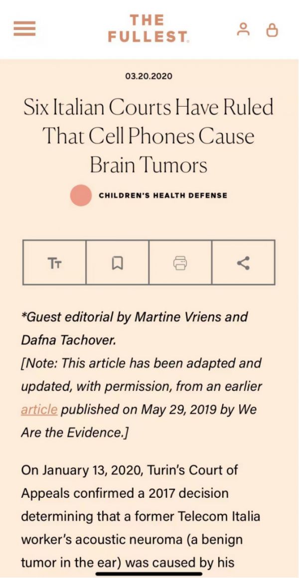 去年新冠疫情期间,意大利的法院还干了一件大事。都灵上诉法院确认了一项裁决,裁定一名前意大利电信员工的听神经瘤(耳朵中的良性肿瘤)是由使用手机引起的。