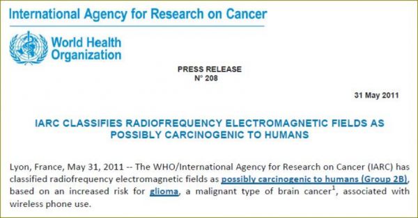 2011年5月,世界卫生组织的专门癌症机构国际癌症研究机构 (IARC) 将射频辐射 (RFR) 归类为“可能对人类致癌(2B 类)”,因为它会增加患癌症的风险