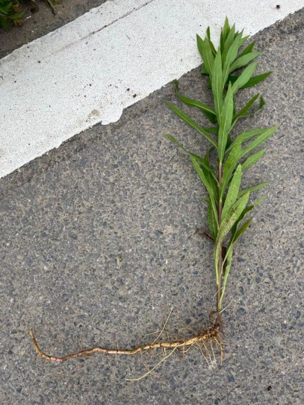 凭着多年野外考察经验,刘胜祥一眼就确认这片还未开花、半米高的杂草就是被称为“生态杀手”的加拿大一枝黄花。他蹲在林间,松了松周边的泥土,想着连根拔起。“可惜了,没将整个根状茎清除干净,需要将这一新发生的入侵情况上报、进行专业处理。”刘胜祥拿着其中一株说,“它很狡猾,根茎向下生长一段距离之后,不会再垂直向下,而是朝向某一侧延长根茎,增加了斩草除根的难度。”