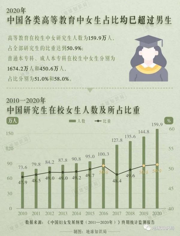 近年来,虽然“国考”岗位的性别倾向总体仍然倾向男性,但男性优势地位在不断下降。根据《中国妇女发展纲要(2011—2020年)》统计,各类高等教育中女生占比均已超过男生。在这一背景下,许多女性也不希望为了高一些的薪资水平离开家乡,前往一些经济发展迅速,但对女性劳动者并不足够友好、“传统”思想留存较多、导致女性在家庭中权责不平等的新兴城市就业。