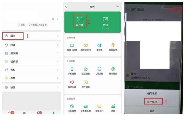 至于第二种手机免密支付,可能有些人开通了,但是不知道如何关闭?或者是怎么规避风险?微信用户,可以切换到“我”界面,选择服务中的收付款,点击付款码的右上角“...”,选择“暂停使用”,或者设置安全锁就可以规避免密付款的风险。