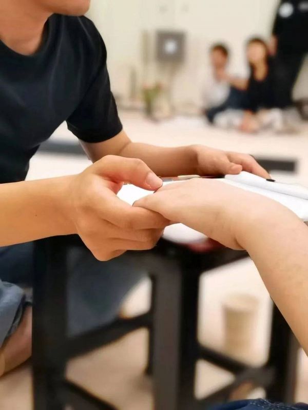 在关了灯的舞蹈室里,她动用手指、手臂、身体的力量包裹住趴在前面的身体,这样的抚触,强调“全然的接纳”以及“全情地给予”,所有人吃惊地看着,像在欣赏一场即兴艺术演出。