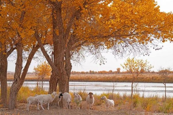 沙漠的边缘,是一片很大的胡杨林。(图/受访者供图)