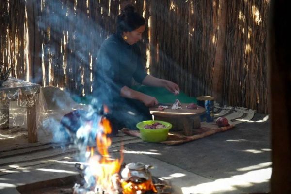 在沙漠边缘的村庄,小吴第一次看到了makuchi(当地人常吃的一种牛肉洋葱馅饼)的制作流程。面团在沙子中被烫熟,被递到自己手上,再混着沙子吃下,这一切都让小吴感到十分新奇。