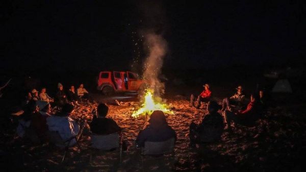 科考团在沙漠中燃起篝火。(图/受访者供图)