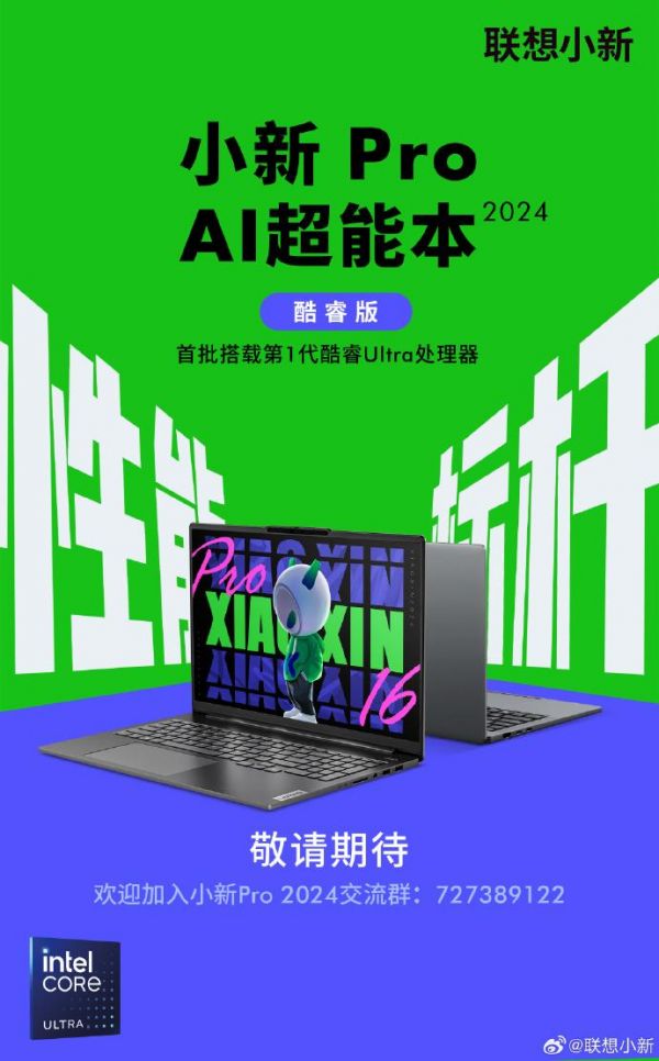 联想小新 Pro AI 超能本 2024 官宣:首批搭载第 1 代酷睿 UItra
