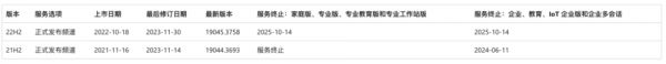 版本 22H2 是 Windows 10 的最终版本。Windows 10 的所有版本(版本 22H2)将在 2025 年 10 月 14 日之前继续支持每月安全更新。