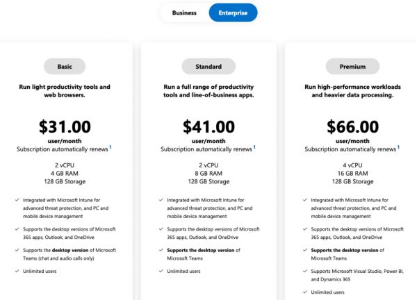 不过,对于 Windows 365 的收费标准,详细如下: