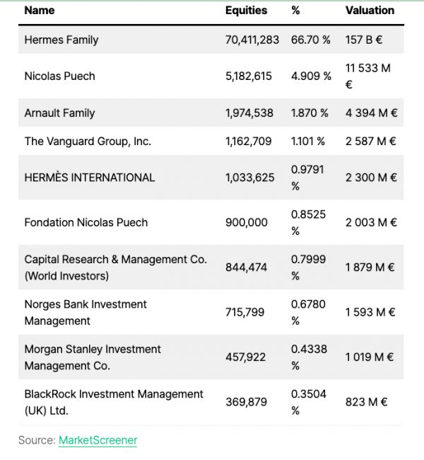 *截至2023年8月24日,爱马仕家族(Hermes家族)控股情况