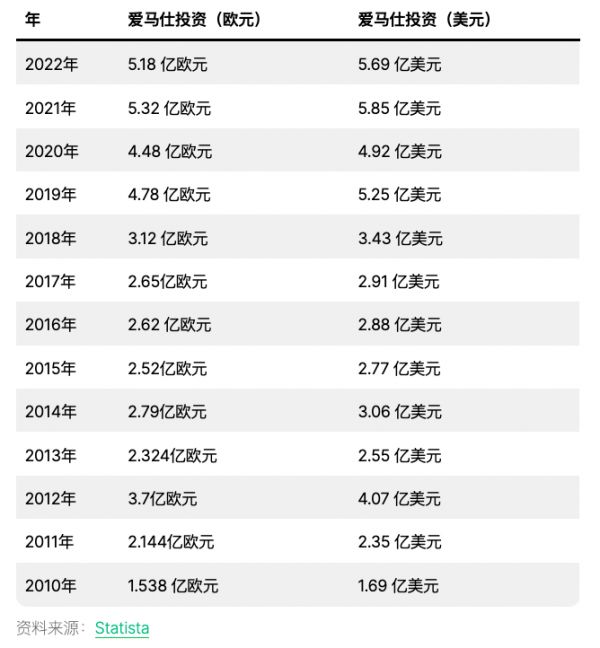 在投资上,爱马仕2022年的投资额为5.18亿欧元,略低于2021年的5.32亿欧元。