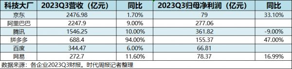 近日,BAT、京东、网易、拼多多等多家已上市互联网大厂先后披露2023年第三季度财报。