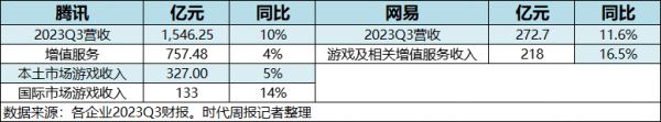 另一边,网易(NTES.O;9999.HK)第三季度游戏及相关增值服务收入218亿元,同比增长16.5%,增速略胜一筹。