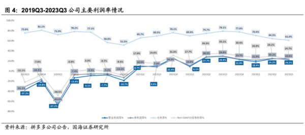 事实上,对 Temu 的大力投入已经开始拖累拼多多的业绩。财报显示,2023 年 Q3,拼多多毛利率为 61%,同比下降 18 个百分点,为 2021 年 Q2 以来最低点。