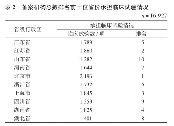 临床试验行业遵循二八定律。申办方出于诸多因素考虑,更愿意选择专业能力强、质量体系健全、机构设施设备配套齐全、项目经验丰富,以及长期合作的机构。据统计,北京、上海等一线城市依旧承担着较多的临床试验项目,远高于机构总数排名第1位的广东省和第3位的山东省。