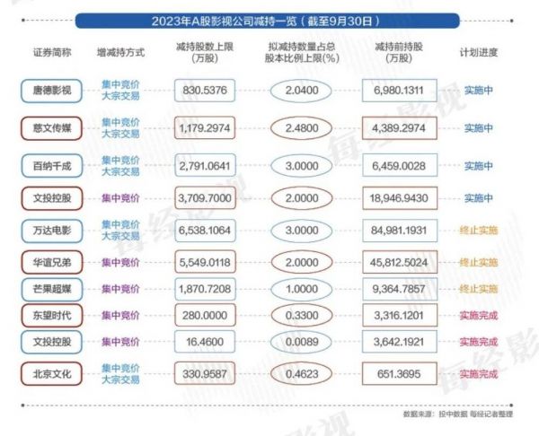 《强影之路2023》中提到,今年在所有受减持影响的影视公司中,万达电影拟减持数量最多,占总股本比例3%。在业内人士看来,中国儒意方面对万达投资的这笔收购在中国院线行业具有里程碑意义,意味着院线渠道从依托商业地产正式进入到依托互联网平台的新时代。