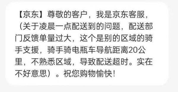 图/京东客服就“凌晨配送”问题的短信回复