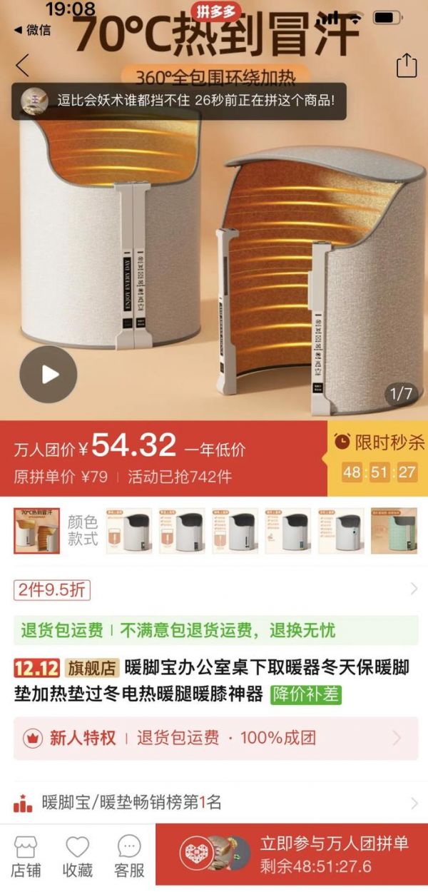 伴随着越来越多年轻消费者“入拼门”选购取暖神器,平台上的商家们也迎来爆发式增长。
