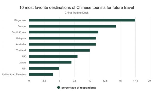△新加坡成为最受中国游客欢迎的旅游目的地。(图源:China Trading Desk)