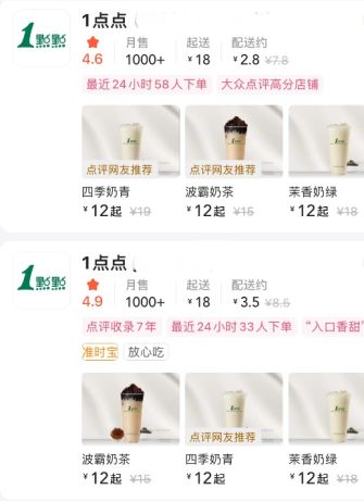一点点的员工透露,一点点门店的日均出杯量已经从巅峰时期的1500杯下滑到了现在的600杯,外卖平台上的数据也被其他茶饮店铺拉开了不小的差距。