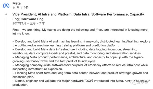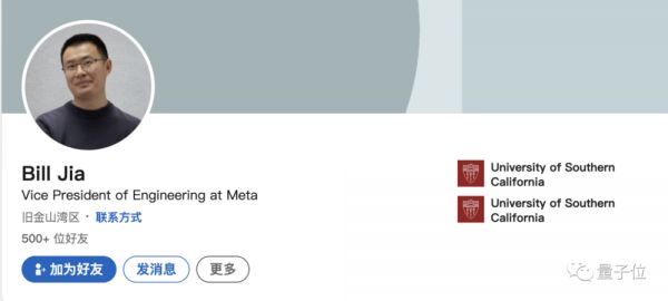 没错,Meta的Bill Jia。Meta的工程高级副总裁,掌舵包括AI/ML基础设施、数据基础设施、性能和容量工程以及硬件工程。技术圈更知名的成绩则是PyTorch——目前最流行的AI框架之一。