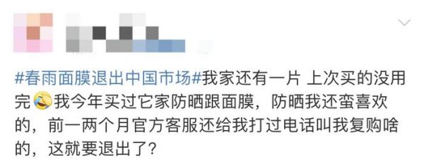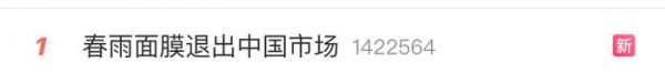 近日,#春雨面膜退出中国市场#话题上了微博热搜第一,曾经在国内红极一时的春雨面膜宣布将停止运营。