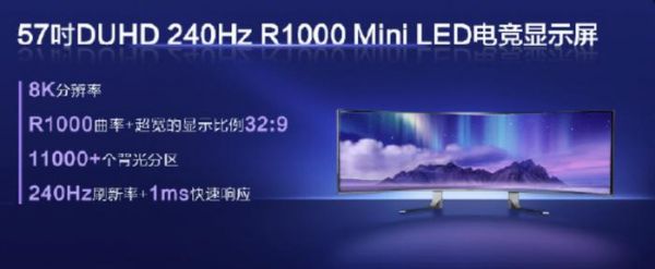 32:9 比例,R1000 曲率,拥有 11000 + 背光分区、240Hz 刷新率。