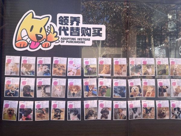 木木美术馆外墙的领养狗狗公益活动宣传。图片来源:作者拍摄