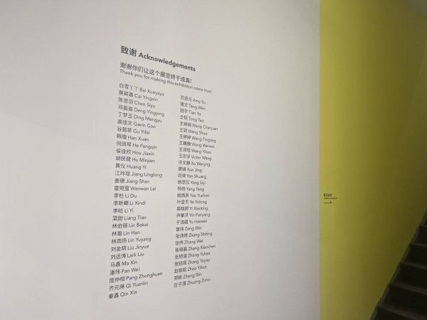 晚晚告诉我,每次展览的致谢名单上,记录着参与项目的所有人员姓名,包括保洁阿姨。图片来源:作者拍摄