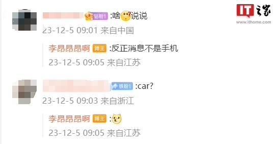 有网友询问能否展开说说,该博主回复称“反正消息不是手机”。此外,还有网友询问是否为汽车,该博主回复了狗头表情包,给广大网友留下了广阔的想象空间。