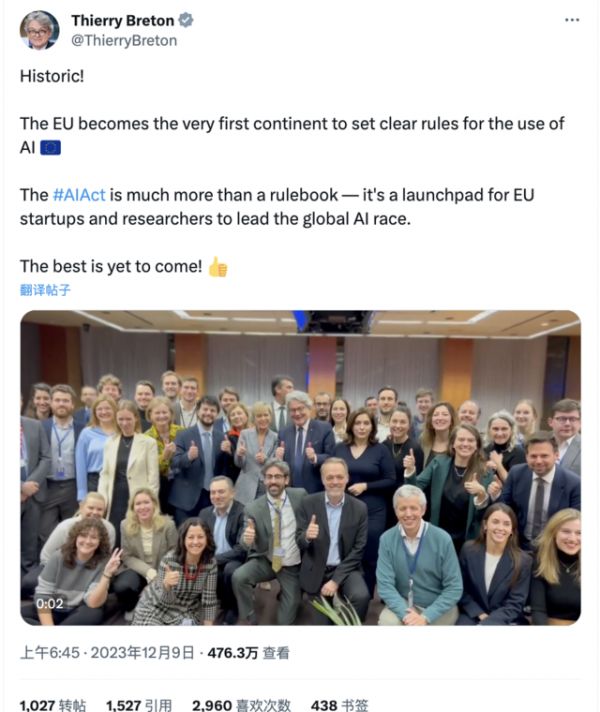 “欧洲将自己定位为先锋,了解其作为全球标准制定者角色的重要性。是的,我相信,这是历史性的一天。”