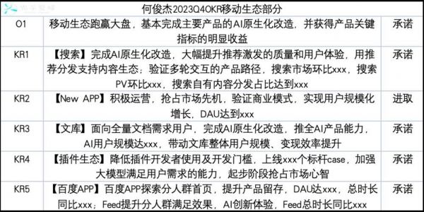 不过分地说,文心一言发展情况折射出国内大模型的现状,从李彦宏和何俊杰的OKR,我们或许可以看到,押注AI十年的百度,以怎样的姿态面对风口。