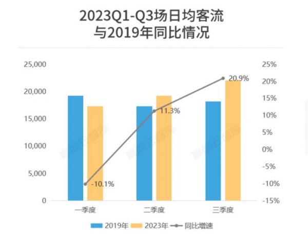 城市商业零售研究机构赢商网的调研数据显示,今年二季度起,我国购物中心场日均客流已恢复至2019年水平,至三季度持续增长,同比2019年涨幅高达20.9%,恢复程度超预期。