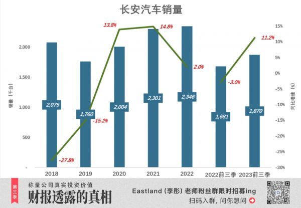 2023年前三季度,长安汽车销量187万辆,同比增长11.2%。