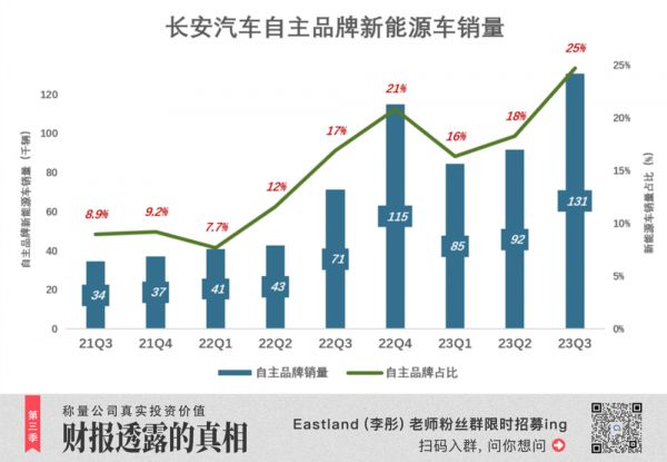 2023年Q3,这个比例攀升至24.7%。照此进度,2024年长安新能源车占比才能追上大盘。