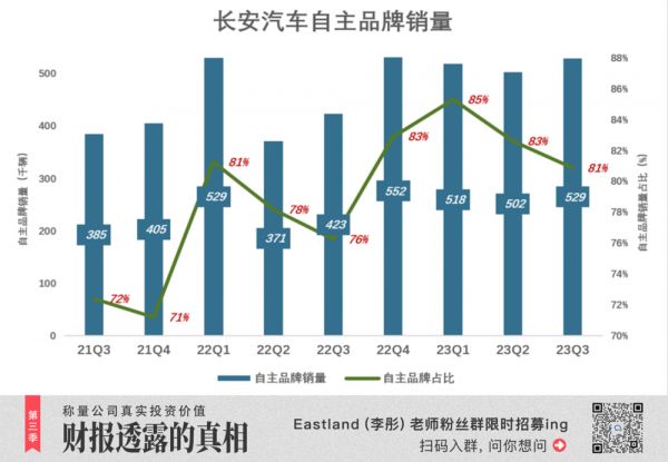 2023年Q3,自主品牌销量为52.9万辆,占总销量的81%。