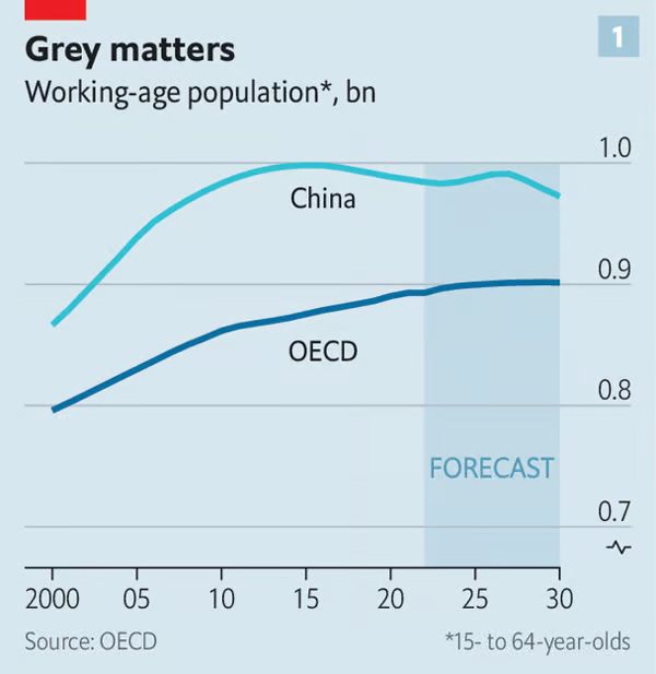 拐点出现在2015年。随着中国劳动年龄人口达到顶峰(9.98 亿),长期存在的全球人口红利结束。