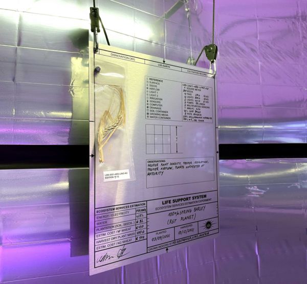 DISNOVATION.ORG是一个艺术与科学结合的创作共同体,于2020年发起了公共艺术项目Life Support System:在封闭环境中种植1平方米单位的小麦,监测小麦生长所需水、光、热量和其他营养物质及其费用,并实时反映给公众。图源:DISNOVATION.ORG